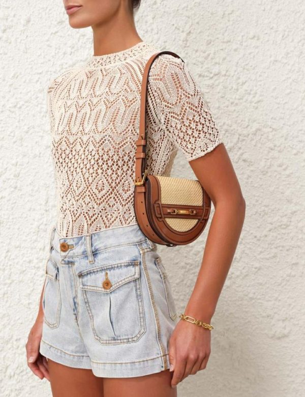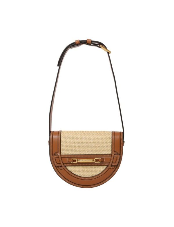 The Raffia Convertible Mini Bag in Avalon from our Resort 2024 Collection. A convertible leather and raffia bag featuring a gold brass buckle detail.