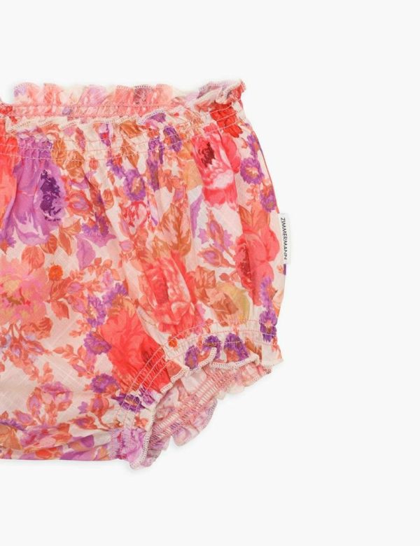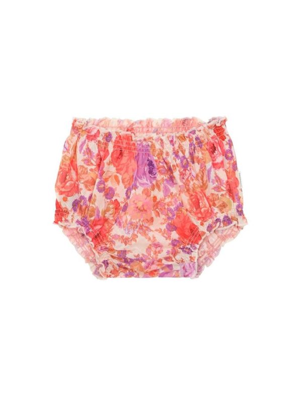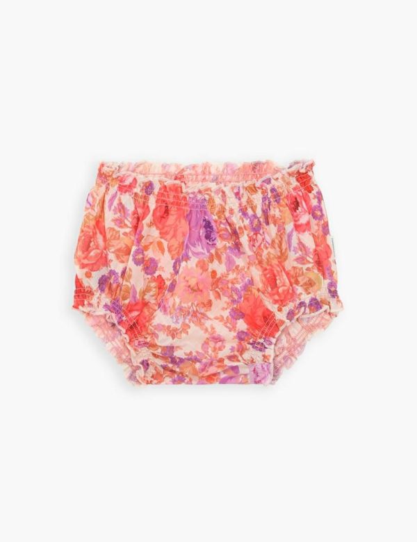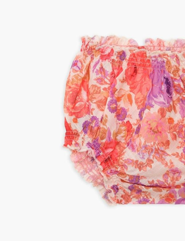 The Raie Bloomer in Red/Purple Floral from our Summer Swim 2023 Collection. A cotton bloomer with elastic trims and frilled edges.