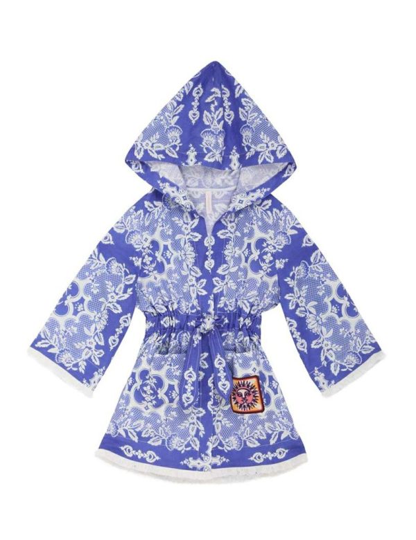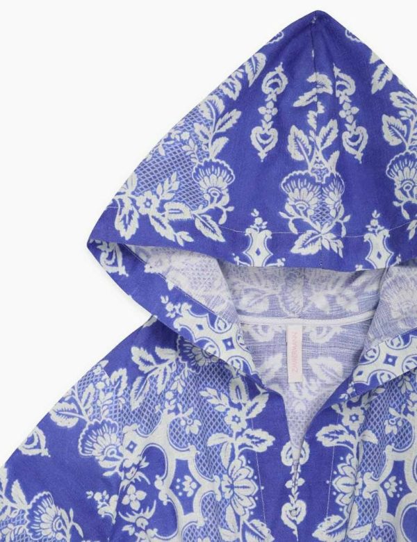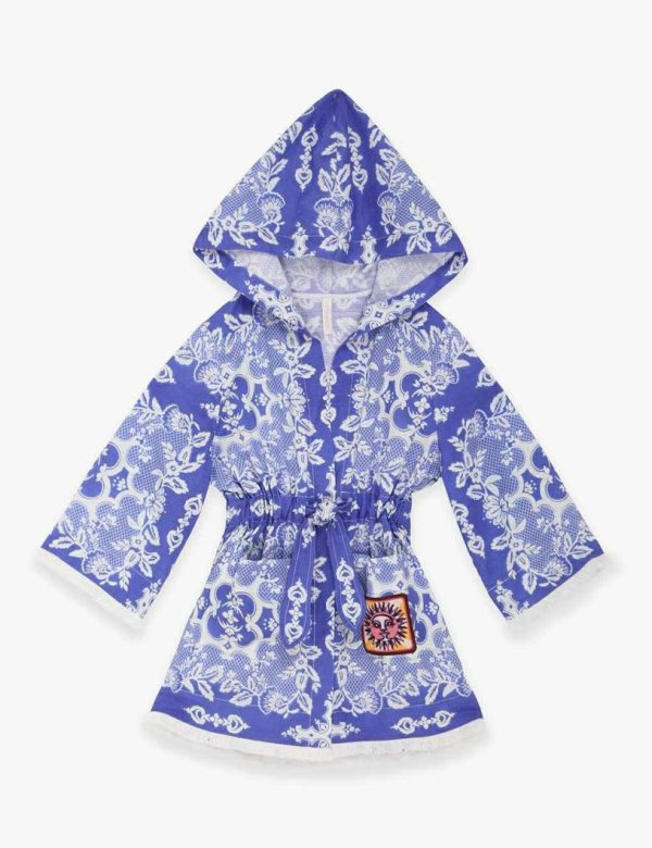 The Raie Hoodie in Blue Floral from our Summer Swim 2023 Collection. A cotton hooded dress featuring an elasticated waistband.