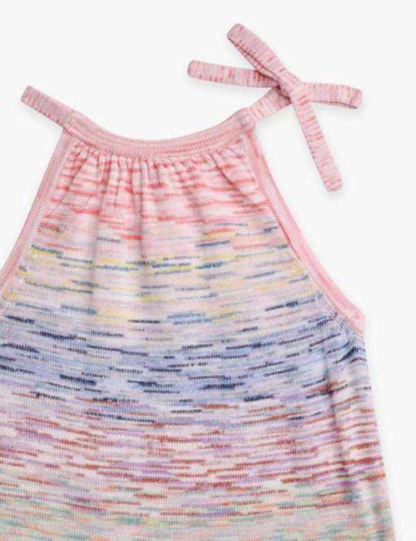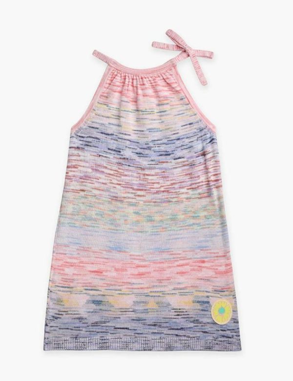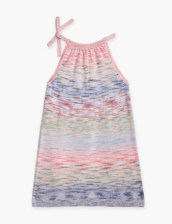 The Raie Marl Tie-Neck Dress in Marle Stripe from our Summer Swim 2023 Collection. A cotton blend mini dress featuring a self tie halter neck and contrast marl throughout.