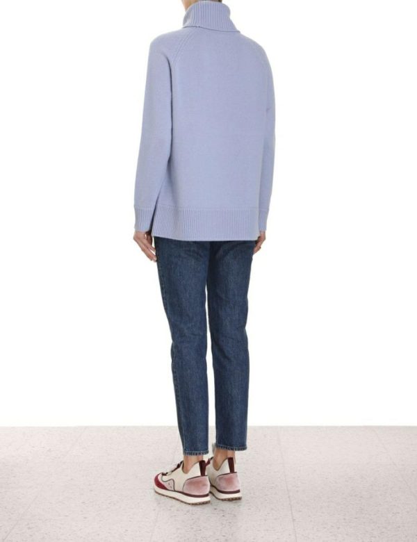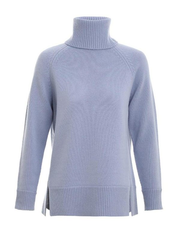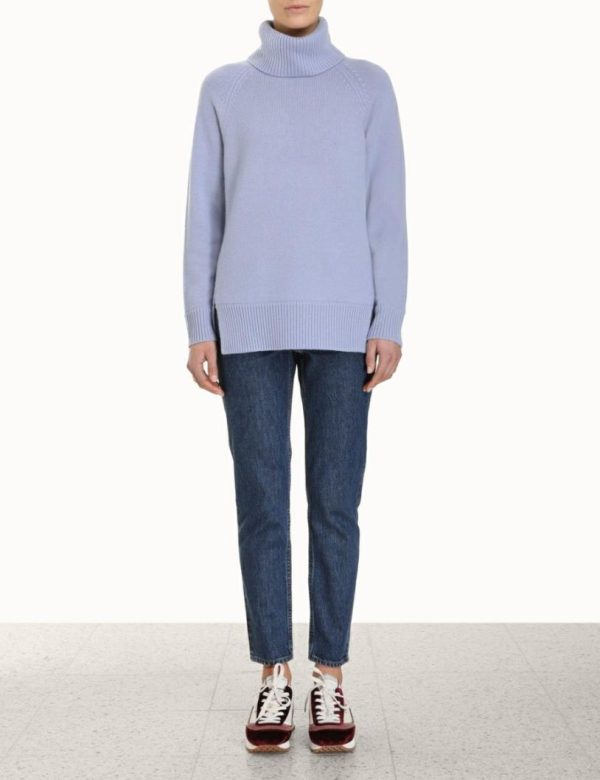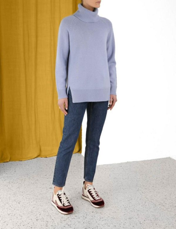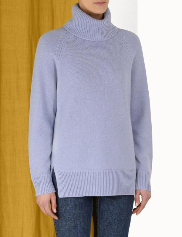 The Roll Neck Sweater in Blue from our Fall 2023 Collection, Luminosity. A wool blend sweater featuring a thick roll neck and ribbed edges throughout.