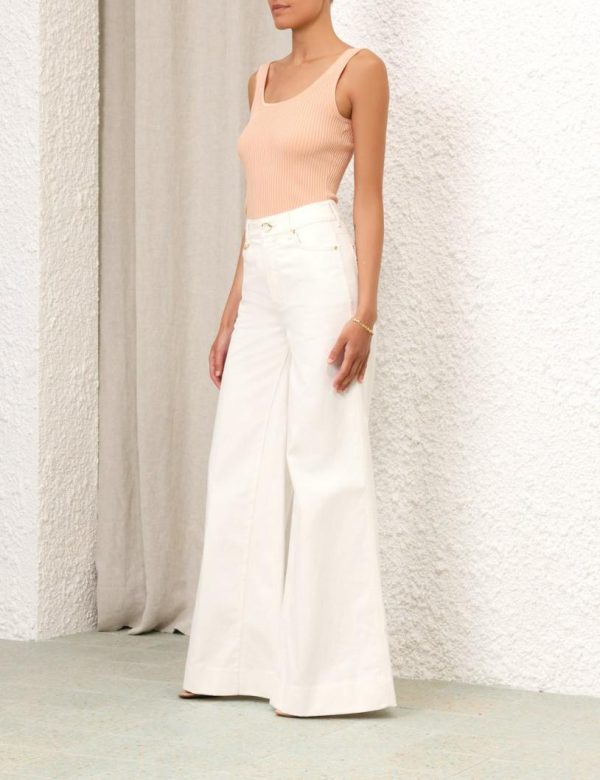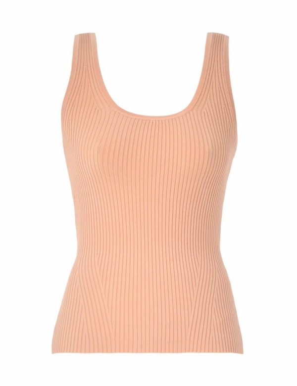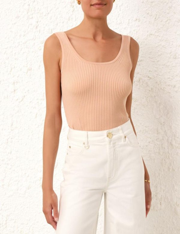 The Scoop Neck Tank in Nude Pink from our Resort 2024 Collection, Matchmaker. A ribbed knit, fitted tank with a scoop neckline at the front and back.