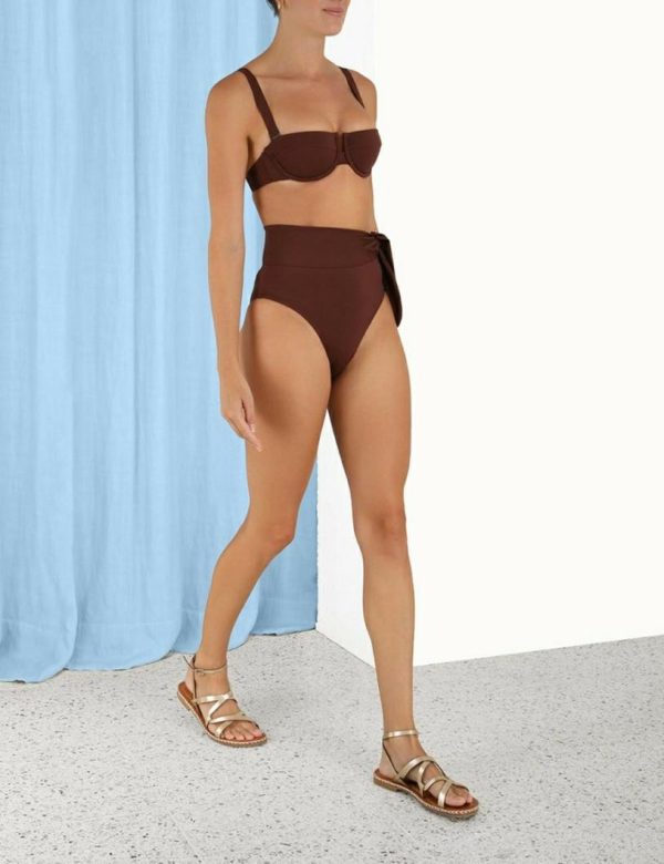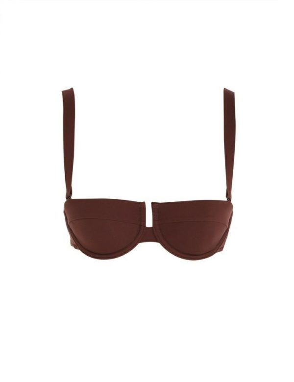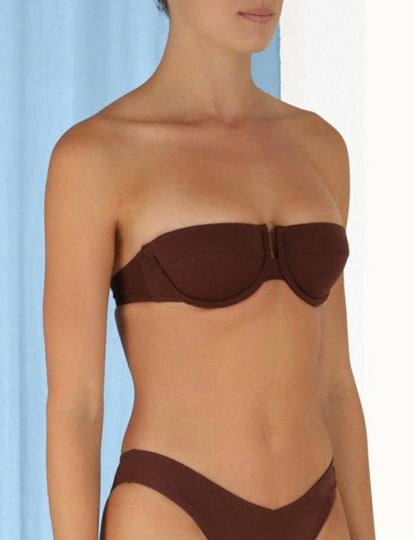 The Separates Sculpt Balconette in Chocolate from our Summer Swim 2023 Collection. A balconette bandeau bikini top constructed from form-fitting Italian lycra.