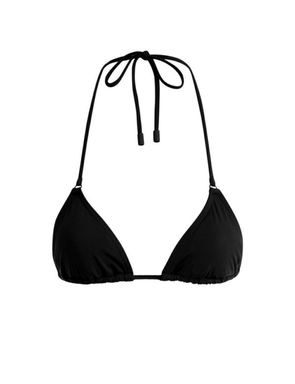 The Separates Sculpt Mini Tri in Black from our Resort Swim 2024 Collection. A triangle bikini top constructed from form-fitting Italian lycra, finished with self tie straps.