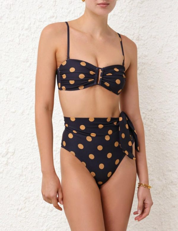 The Separates Sculpt HW Pant in Navy/Beige Dot from our Resort Swim 2024 Collection. A high waisted bikini pant constructed from form-fitting Italian lycra featuring a self-tie detail at the side waist.