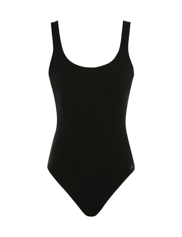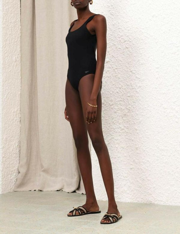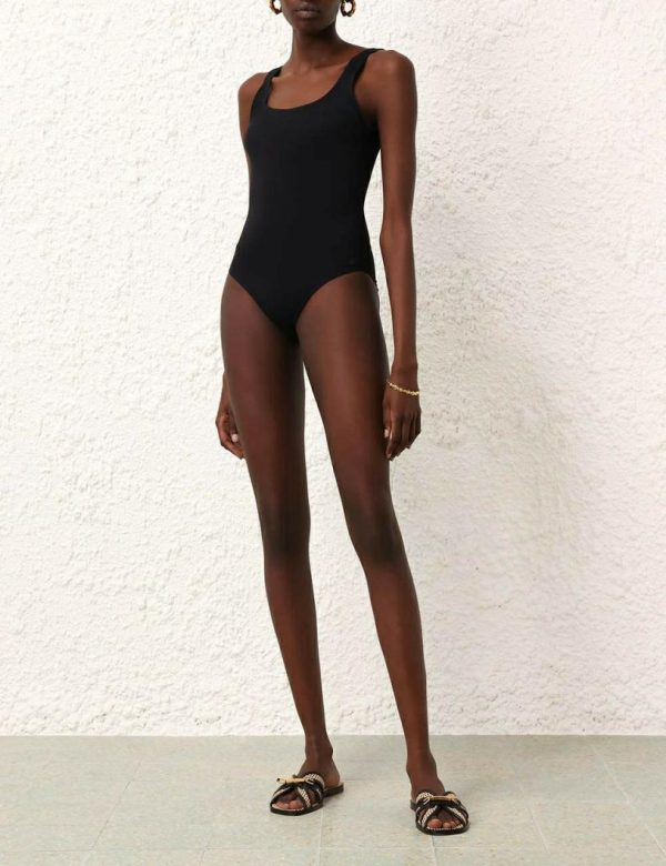 The Separates Sculpt Scoop 1PC in Black from our Resort Swim 2024 Collection. A lycra one piece featuring a scoop neckline and a shelf bra.