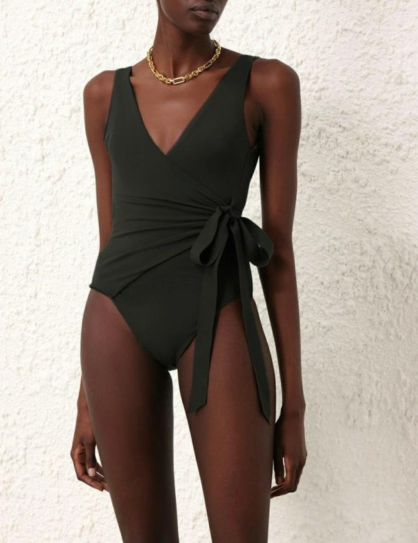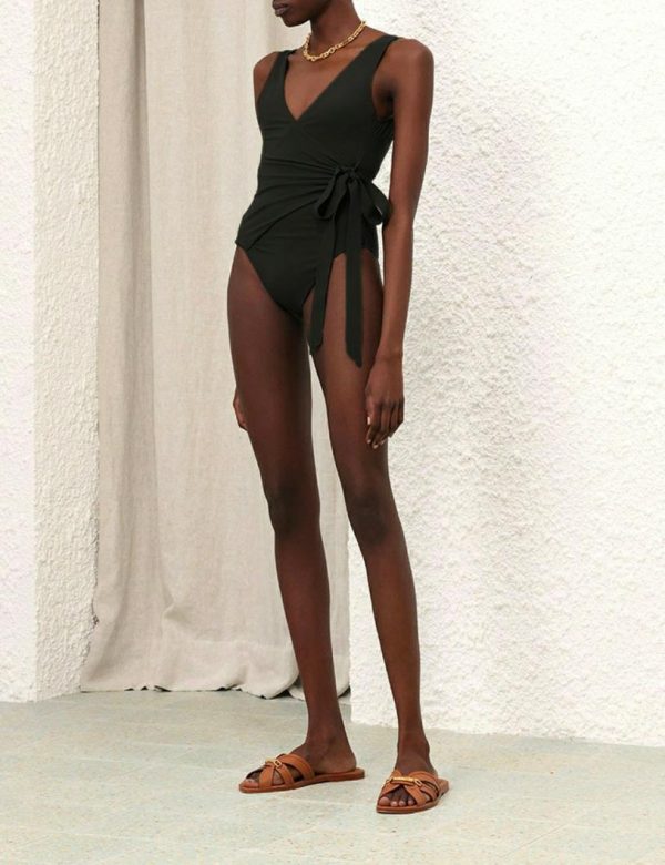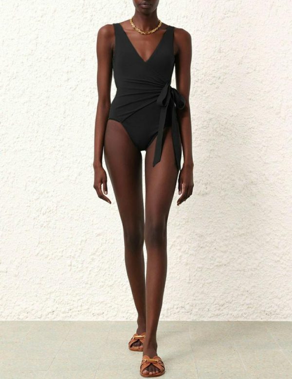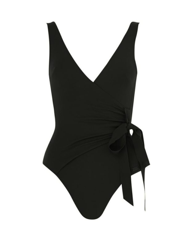 The Separates Sculpt Wrap Tie 1PC in Black from our Resort Swim 2024 Collection. A wrap style one piece constructed from form-fitting Italian lycra, designed to sculpt and shape the body.