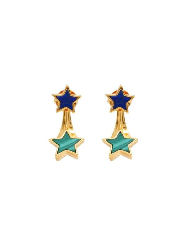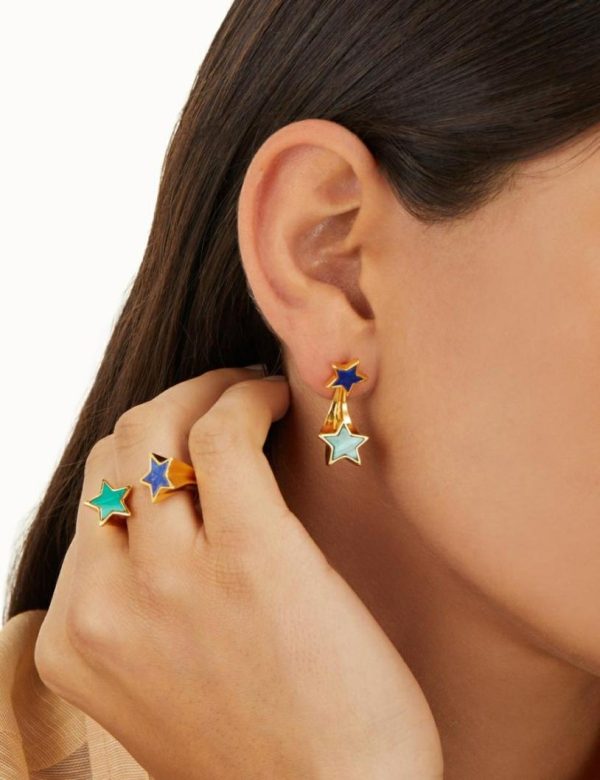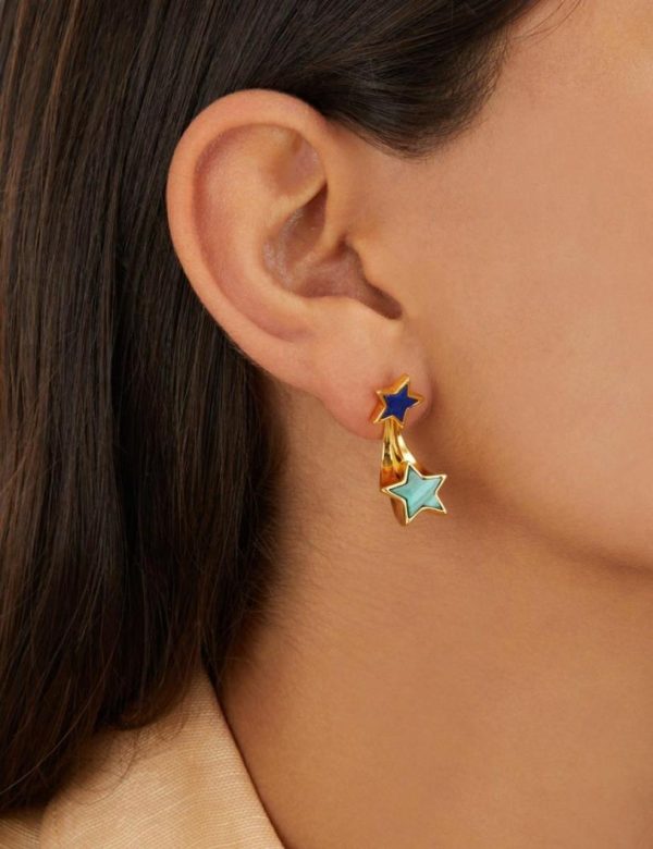 The Shooting Star Ear Jacket in Multi from our Spring 2023 Collection, Wonderland. A gold plated earring featuring semi precious stones in a star bezel setting.