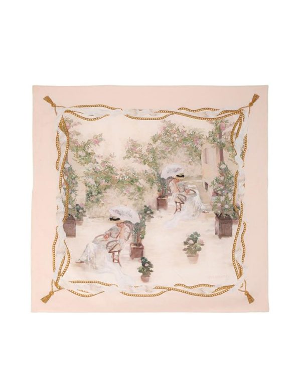The Silk Square Scarf in Sunny Nook Print from our Fall 2023 Collection, Luminosity. A silk square scarf featuring a customised placement print and fine rolled hem.