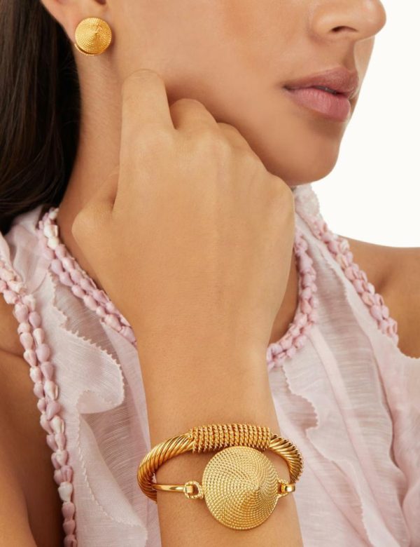 The Twisted Rope Cuff Gold from our Spring 2023 Collection, Wonderland. A gold plated cuff with rope look detailing.