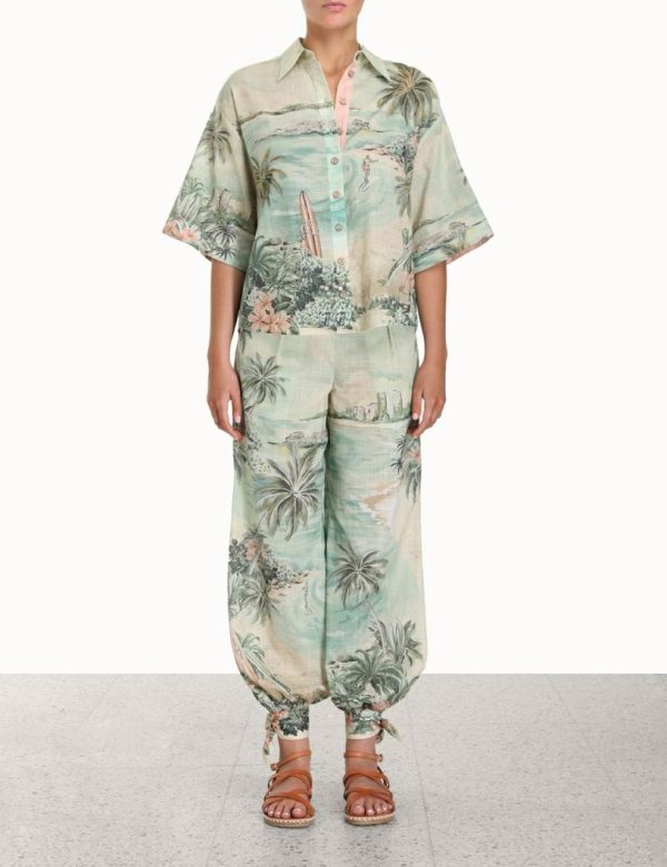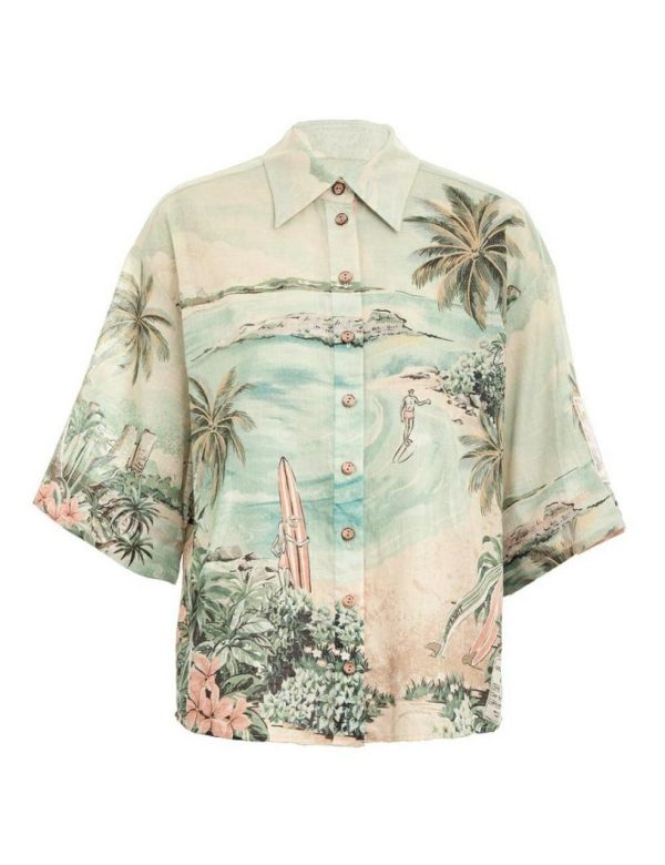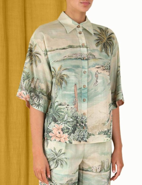 Zimmermann Vacay Surf Shirt Green Multi | Women Tops