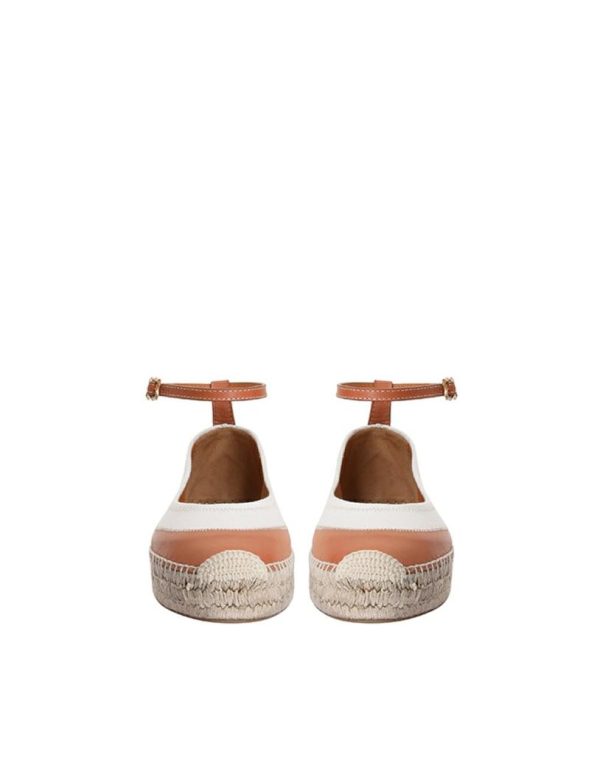 The Wavy Espadrille Ballerina in Tan from our Summer Swim 2023 Collection. A ballerina style espadrille featuring a contrast leather and canvas upper.