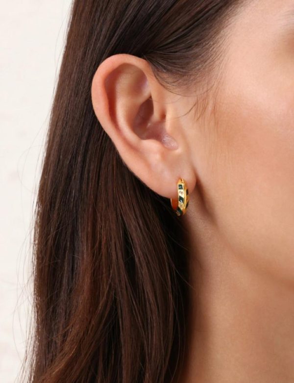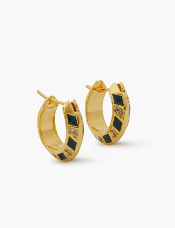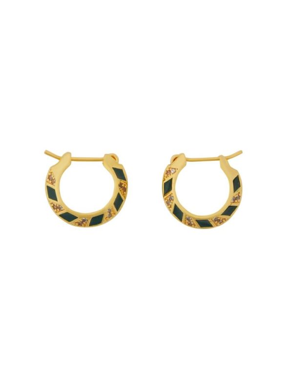 The Zimmemorabilia Mini Hoops in Gold/Green from our Resort 2024 Collection, Matchmaker. A gold plated hoop earring featuring cubic zirconia stones and contrast enamel throughout.