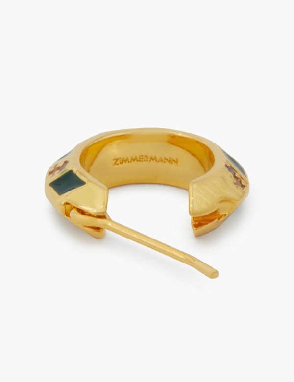 Zimmermann jewellery is produced in 12kt gold-plated brass. Lease remove when exercising, showering or swimming. Keep enamel away from perfumes, acetones, hand and body creams and water as they may cause damage or discolouring. Clean your enamel jewellery pieces with warm water, a mild liquid soap and a soft cloth. Store in a cool, dry place to prevent damage. Keep away from direct sunlight and heat. Always check the garment care label for specific care instructions.