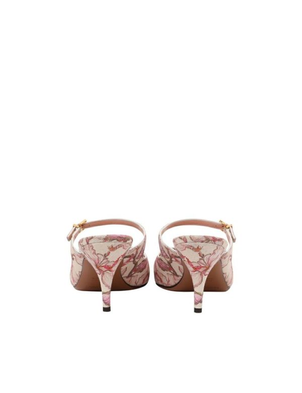 The Aura Mule 65 in Coral Hibiscus from our Resort 2024 Collection, Matchmaker. A leather stiletto mule featuring a linen print throughout.