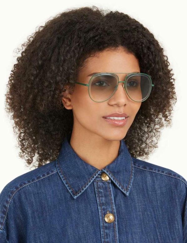 The Zimmermann Dancer Aviator in Olive from our Fall 2023 Collection, Luminosity. A classic oversized aviator shape featuring a enamel painted metal frame with a dual lens.
