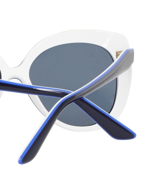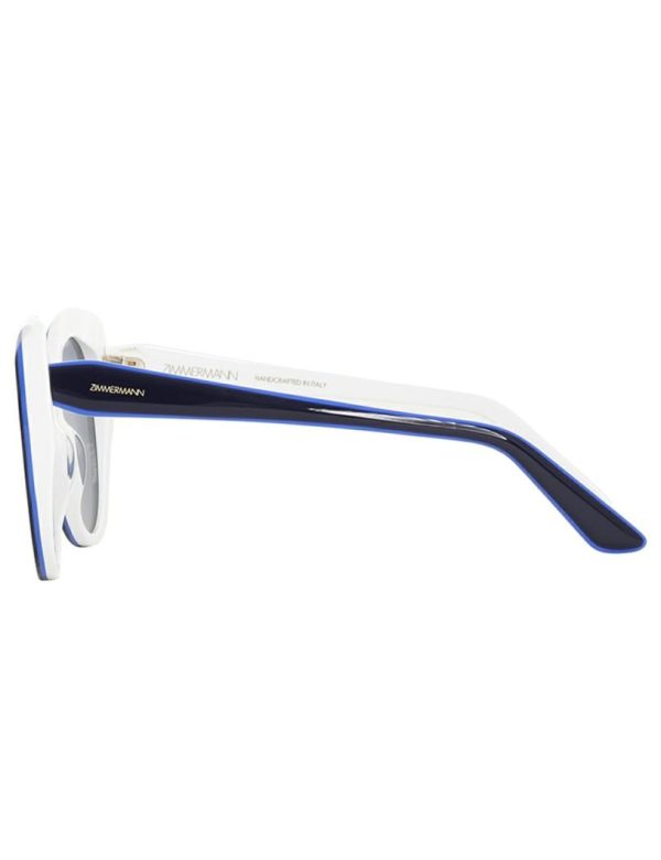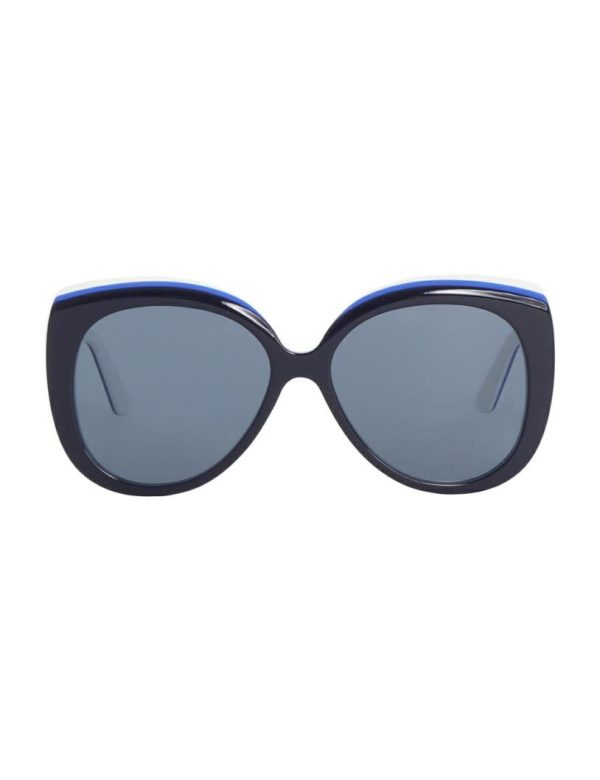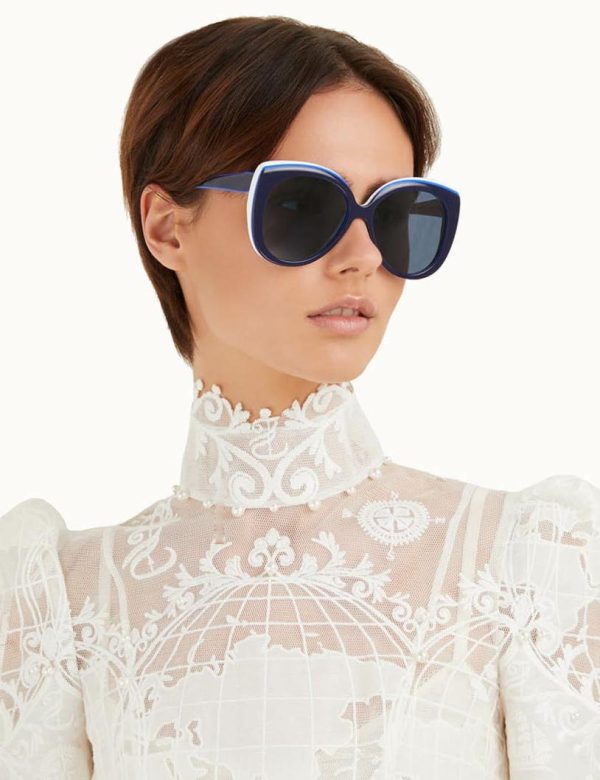 The Zimmermann Inconcert Round in Navy from our Resort 2023 collection, High Tide. An round acetate frame with bevelled edges and tinted, tonal lenses featuring signature temples and tips.