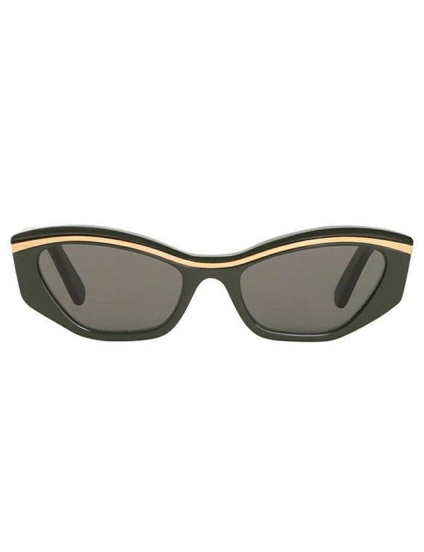 The Zimmermann Lyrical Cat Eye in Khaki from our Fall 2023 Collection, Luminosity. An acetate cat-eye featuring a contrast gold brow bar.