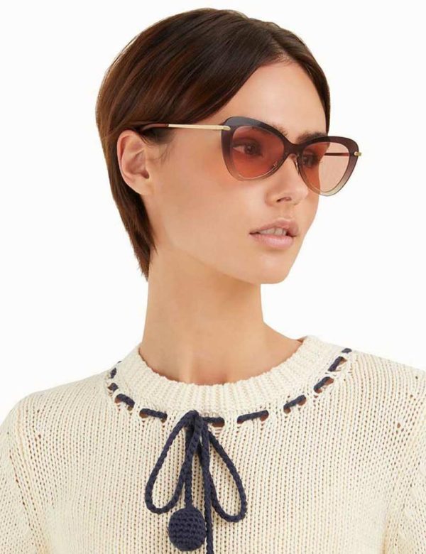 The Zimmermann Rhythmic Bold Mask in Chocolate from our Resort 2023 Collection, High Tide. A butterfly shaped acetate frame featuring a sheer colour wash and solid tint lenses, finished with bevelled edges.
