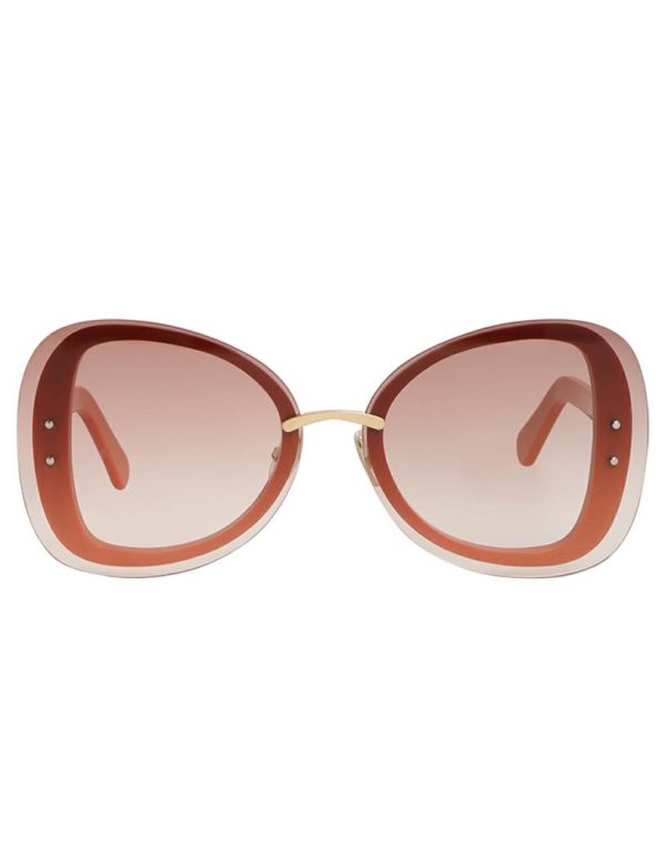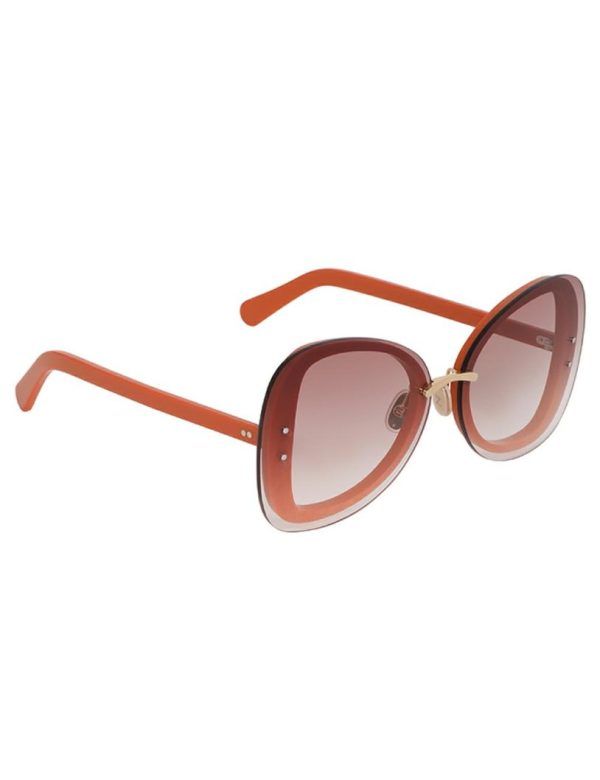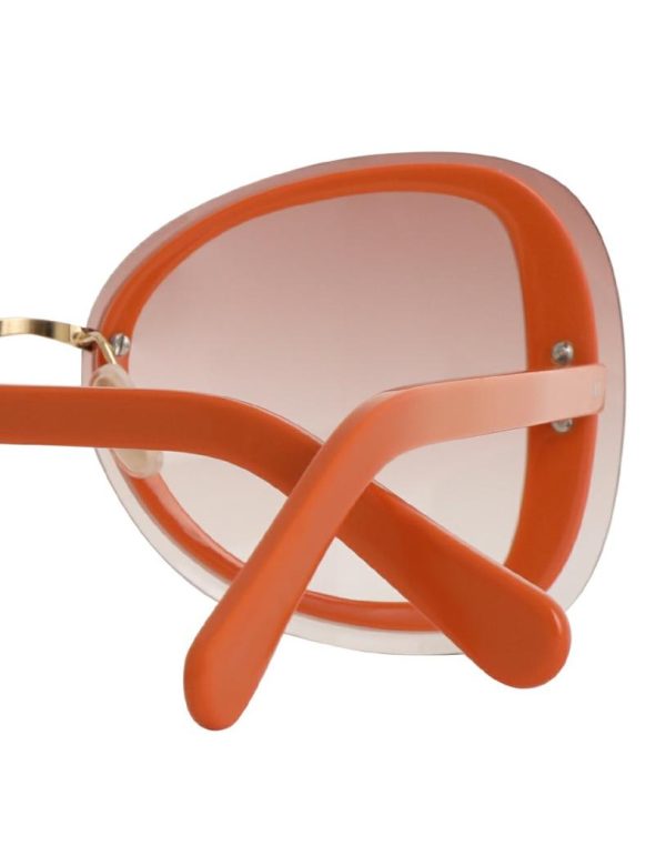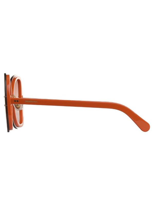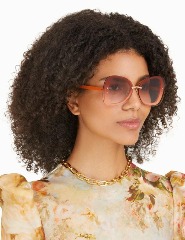 The Zimmermann Sensory Butterfly in Pumpkin from our Fall 2023 Collection, Luminosity. An oversized butterfly frame featuring gradiating lenses.