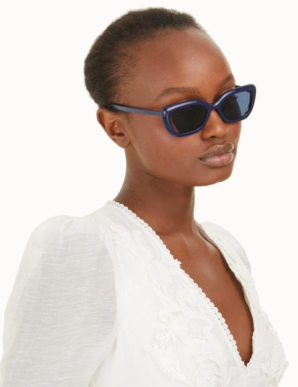 The Zimmermann Tama Square in Navy from our Spring 2023 Collection, Wonderland. A mid-sized squared frame with cutaway lenses.