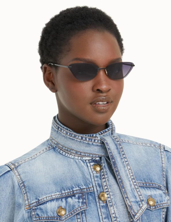 The Zimmermann Uptempo Cat Eye in Black from our Fall 2023 Collection, Luminosity. A classic cat-eye shape featuring a micro acetate frame.